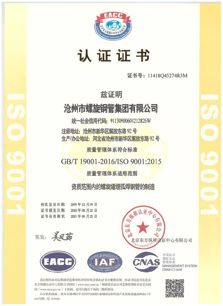 歡迎進(jìn)入滄州市螺旋鋼管集團(tuán)有限公司 主營產(chǎn)品:螺旋鋼管 石油管道螺旋鋼管 出口螺旋鋼管 天然氣管道螺旋鋼管